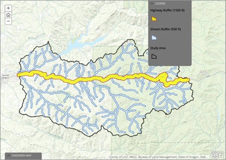 The map displayed on the Main Stage of your Story Map Journal will now open with the legend visible and the overview map minimized.