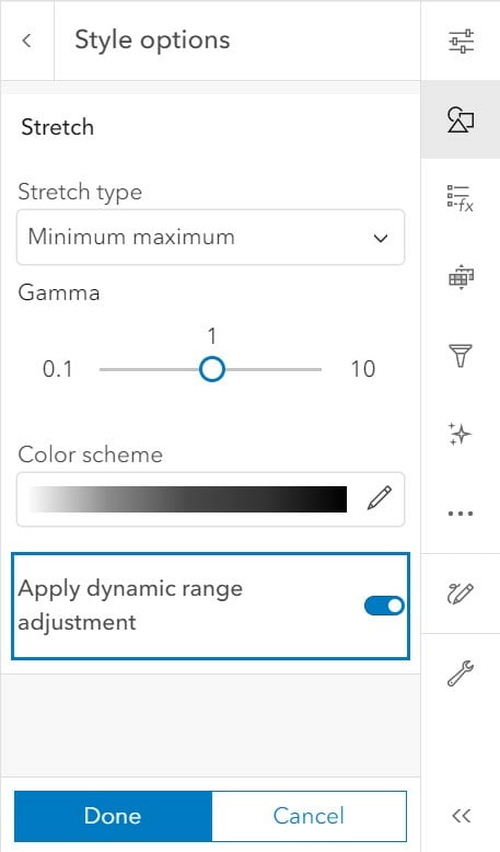 Step 7: Toggle Apply dynamic range adjustment on. This means the layer style only considers the lowest and highest values within your view. It squeezes the color gradient, so you always force the full contrast of black to white.