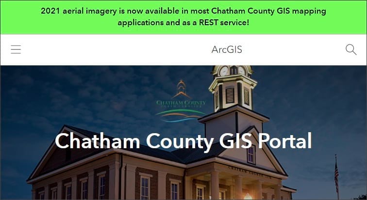 Below is an example of an information banner that notifies visitors to the Chatham County GIS Portal of new aerial imagery.