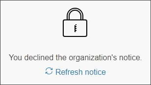 If accept/decline is used, Accept must be clicked to continue on to the site. Otherwise, the following message appears, providing the visitor an opportunity to refresh and review the notice to accept it: