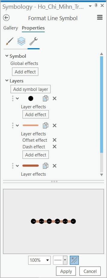 The pane then shows symbol formatting options for the selected line symbol.