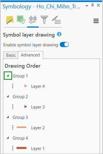 - On the Symbology pane, click the back arrow to access the Symbol layer drawing tab (), then turn on Enable symbol layer drawing.