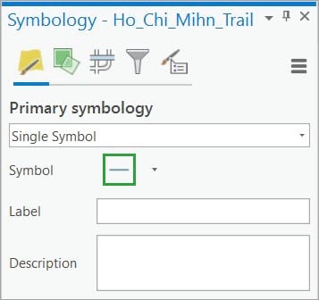 - On the Contents pane, click the Ho_Chi_Minh_Trail line layer to select it. On the ribbon, the Feature Layer contextual tab set appears.