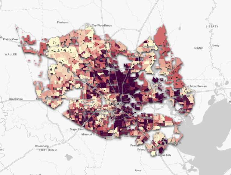 Your original data layer should look like the “Feature Specific – Area Filter” layer. Now, not only can you clearly observe patterns within Harris County, but you can also compare with data from neighboring areas.