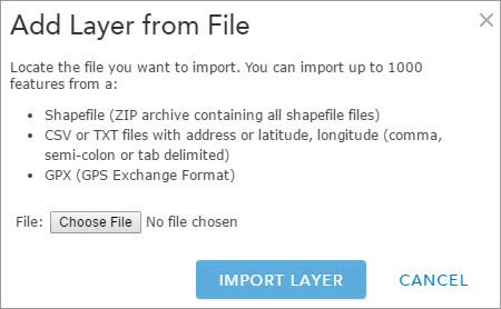Next, browse to the location of your GPX file, select it, and click IMPORT LAYER: