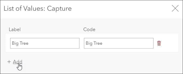 Step 6: Enter Label (the displayed value) and Code (the stored value) pairs for the attributes.