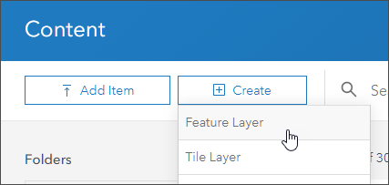 Step 2: In the Content tab, click Create, then choose Feature Layer.