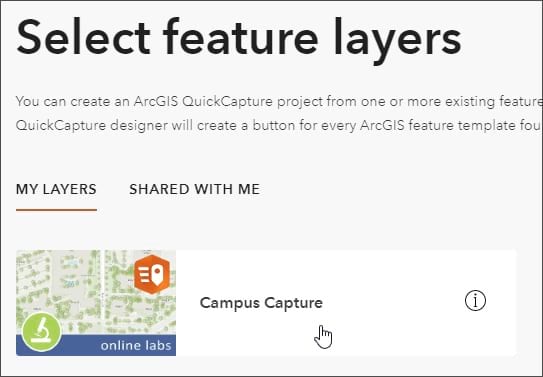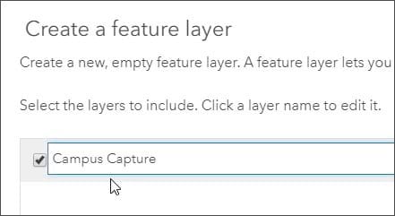 Step 3: Choose the feature layer created in the sections above. In this example, the layer is titled Campus Capture.