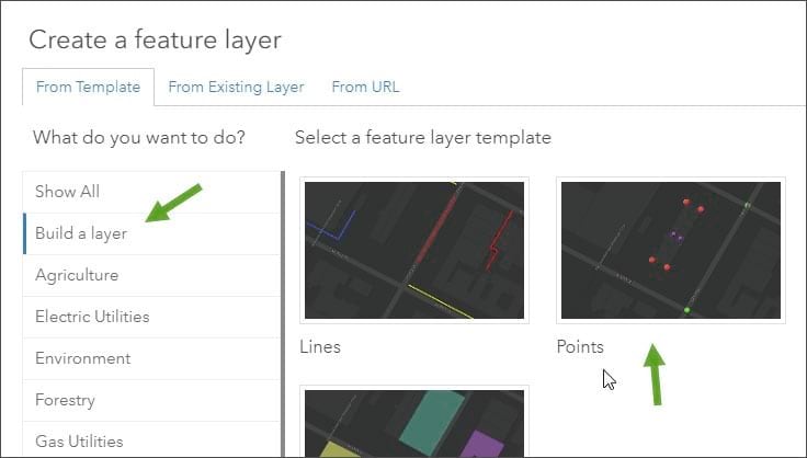Step 3: In the From Template tab, choose Build a layer, then select Points.