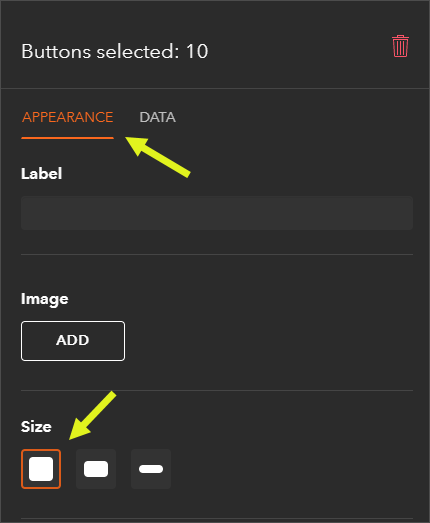 Step 4: With all buttons selected, open the Appearance tab and choose the large button size.