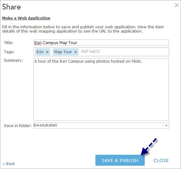 Once completed, click Save. Now you are ready to share your map tour with others.