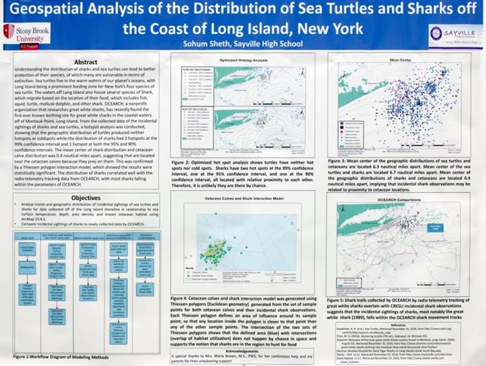 Best Student Map Ages 13–18—Sohum Sheth of Sayville High School in West Sayville, New York, for Geospatial Analysis of the Distribution of Sea Turtles and Sharks off the Coast of Long Island, New York