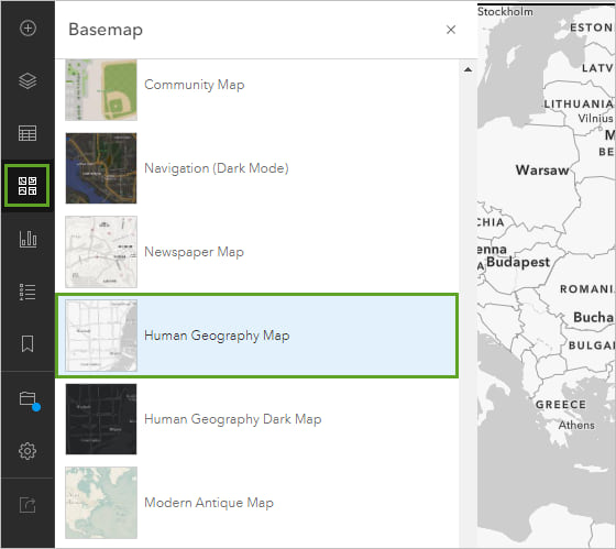 Step 1: Open Map Viewer in ArcGIS Online. Change the basemap to Human Geography Map.