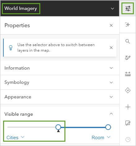 Next, you’ll make sure that the imagery layer only appears when you are zoomed in.
