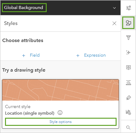 Step 5: In the black bar at the top of the Properties pane, click the dropdown, and change World Imagery to Global Background.