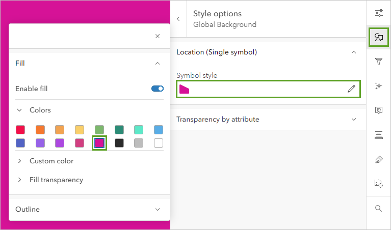 Step 5: Click Style options and then the box under Symbol style, and change the color to pink. Click Done.