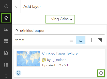 Step 7: For some additional fun, you can add the Crinkled Paper Texture layer, which is also from ArcGIS Living Atlas and created by Esri cartographer John Nelson.