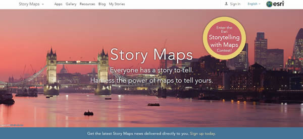 Step 1—Go to the Esri Story Maps website. At the top of the page, click Apps.