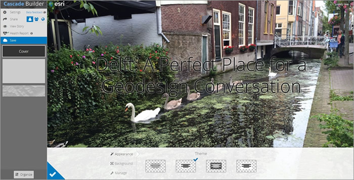 The Esri Story Map Series app presents a series of maps and other types of content, such as images or videos, via a set of tabs, bullets, or side accordion controls. This app is excellent for showing a structured set of maps as well as different places on the same map. It also can be used to compare multiple datasets.