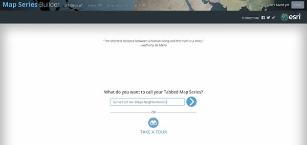 Step 2—When the Map Series Builder opens, enter a name for your story, such as “Some Cool San Diego Neighborhoods”.