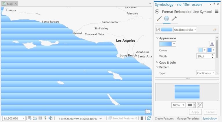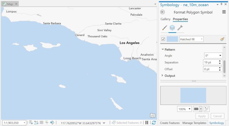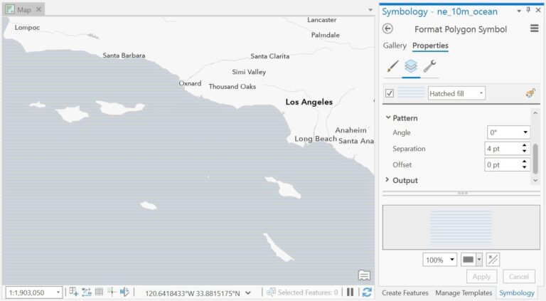 ArcGIS Pro contains plenty of options to spruce up your feature layers and take your map to the next level. In this tip, you’ll learn to create a wave pattern with the hatched fill symbology in ArcGIS Pro that will make your water features stand out from the pack.