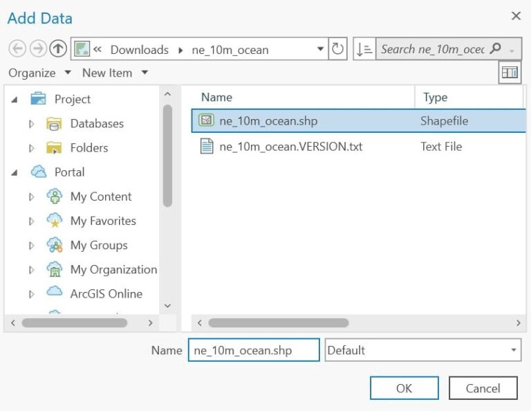 Step 2: Download an ocean feature layer and import the shapefile into your new project by clicking Add Data and then clicking the shapefile. The effect will work with other feature layers as well.