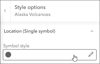 Step 3: In the sample map, open the Layers pane from the Contents (dark) toolbar. Ensure that the Alaska Volcanoes layer is selected and the Uploaded symbol examples layer is hidden.