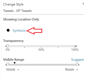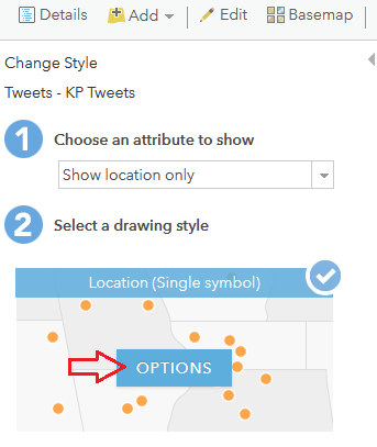 Step one—In your web map, click Content, then hover over your layer—in this case, the Tweets layer—and click Change Style.