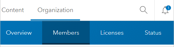 Step 1: Sign in to ArcGIS Online as an administrator and click Organization at the top of the site. Then click the Members tab to see a list of your organizational account’s members.