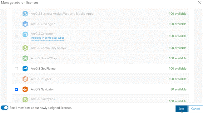 If you want to assign ArcGIS Navigator licenses to the mobile workers in your organizational account, follow the steps below.