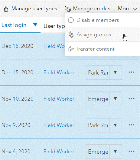 Step 1: With the mobile workers still selected, go to the More menu and click Assign groups.