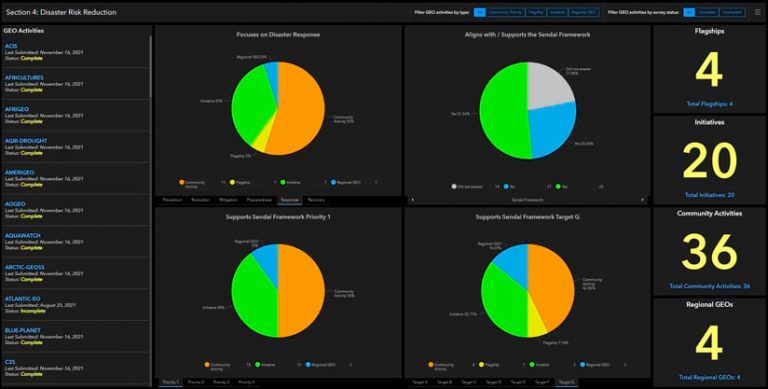 “ArcGIS Survey123 has proven to be a very useful tool that meets the specific needs of our working groups, including the critical ability to capture and communicate the inherently spatial aspect of GEO’s efforts and impact around the world. For the GEO DRR WG, the collected data informs us where we should focus our efforts during the coming year,” Borges said.