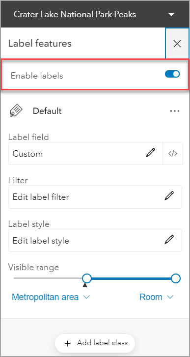 Step 6: In the Label features pane, make sure that Enable labels is toggled on.