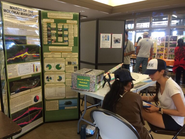 First introduced to Moloka’i in 1905, the mangrove is an invasive non-native plant. Motivated by the changes the mangrove was making to her home, Jenkins worked alongside her sister Sarah on their award-winning project “March of the Molokai Mangrove.” Using GIS, the pair explored the social, economic, and ecological challenges the mangrove posed to the island.