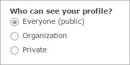 When you edit your profile, ensure that it will be visible to others. Look under the question, Who can see your profile? and click Everyone to ensure that no matter how you share your items, others will know who you are and what organization you represent.