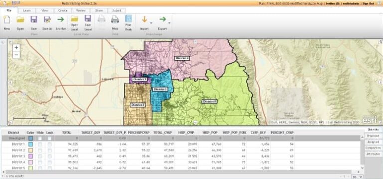 Crucially, while residents had the option of starting their redistricting plans from scratch, county staff were also able to set up templates within Esri Redistricting based on current supervisory districts with the correct data tables used by the board in making a final decision.