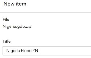 A New item window now appears. In the Title text box, replace any existing text by typing “Nigeria Flood” followed by your name or initials (for example, Nigeria Flood YN).