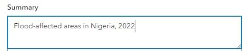 Click the Add a summary line. In the box below the Summary heading, type “Flood-affected areas in Nigeria, 2022”. (These details can be modified later.)