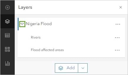 In the Layers pane on the left, click the arrow next to Nigeria Flood to expand the feature layer. The two sublayers are listed.