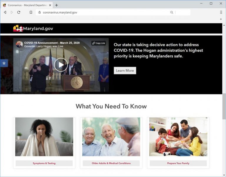 When Maryland residents want current and reliable statewide statistics on coronavirus disease 2019 (COVID-19) and information on how to stay safe during the pandemic, they can turn to a new site at Maryland.gov.