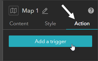 Interactions between widgets in Experience Builder can be configured using triggers and actions. Triggers drive actions in widgets. (See Add actions to widgets.)