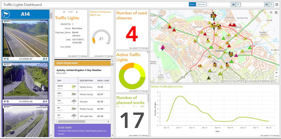Here’s an example of a dashboard with embedded CCTV pictures and a weather report.