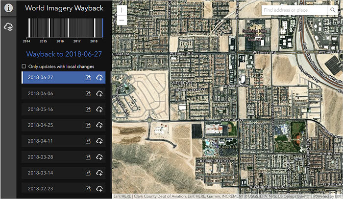 - Las Vegas, Nevada (the default view in the World Imagery Wayback app), to see evidence of urban expansion