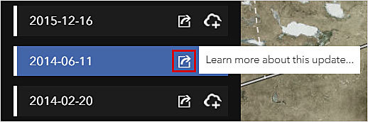 - Above the list of images, click the Only updates with local changes check box to see the dates when imagery was updated for the area on the map. This filters the view in both the timeline and the list of images.