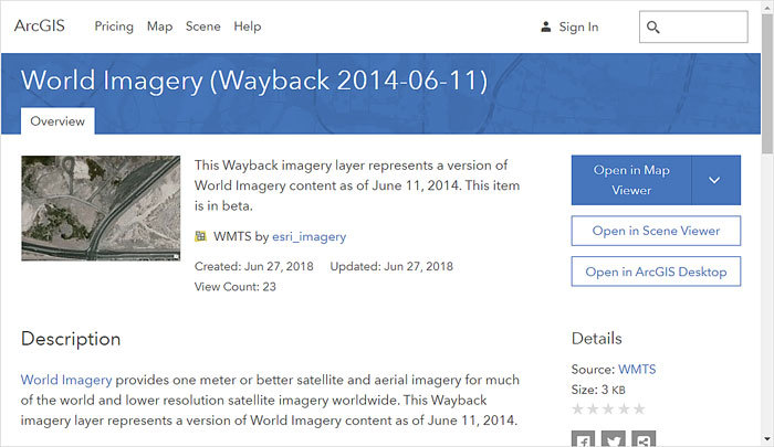 The selected image was visible in the June 11, 2014, update of the World Imagery basemap.