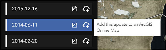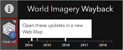 - Once you have selected the images you want, click the icon to the left of the timeline to create the web map in ArcGIS Online.