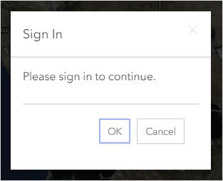 - You will be prompted to sign in to ArcGIS Online if you haven’t already. Note that once you have made a web map during a session, you won’t be prompted again to sign in.