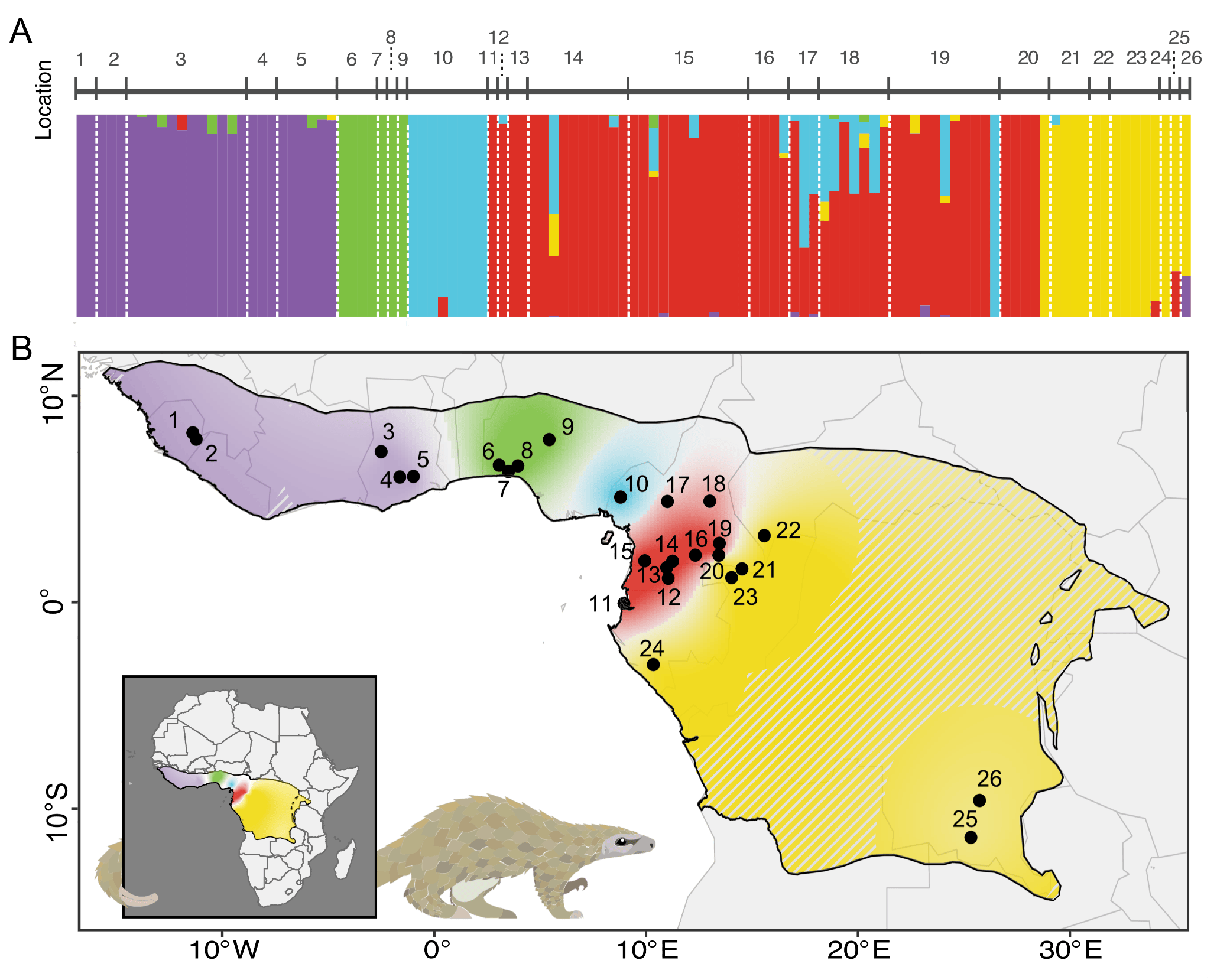 The project was born out of efforts to track and map pangolin poaching by the Congo Basin Institute, a joint initiative of UCLA and the International Institute of Tropical Agriculture. But the idea to map the origins of seized pangolin scales was inspired partly by similar estimation for trafficked elephant ivory and would depend upon a set of techniques first developed for tracking breeding populations of migratory birds. The genomic approach was developed by the UCLA’s Center for Tropical Research Bird Genoscape Project.