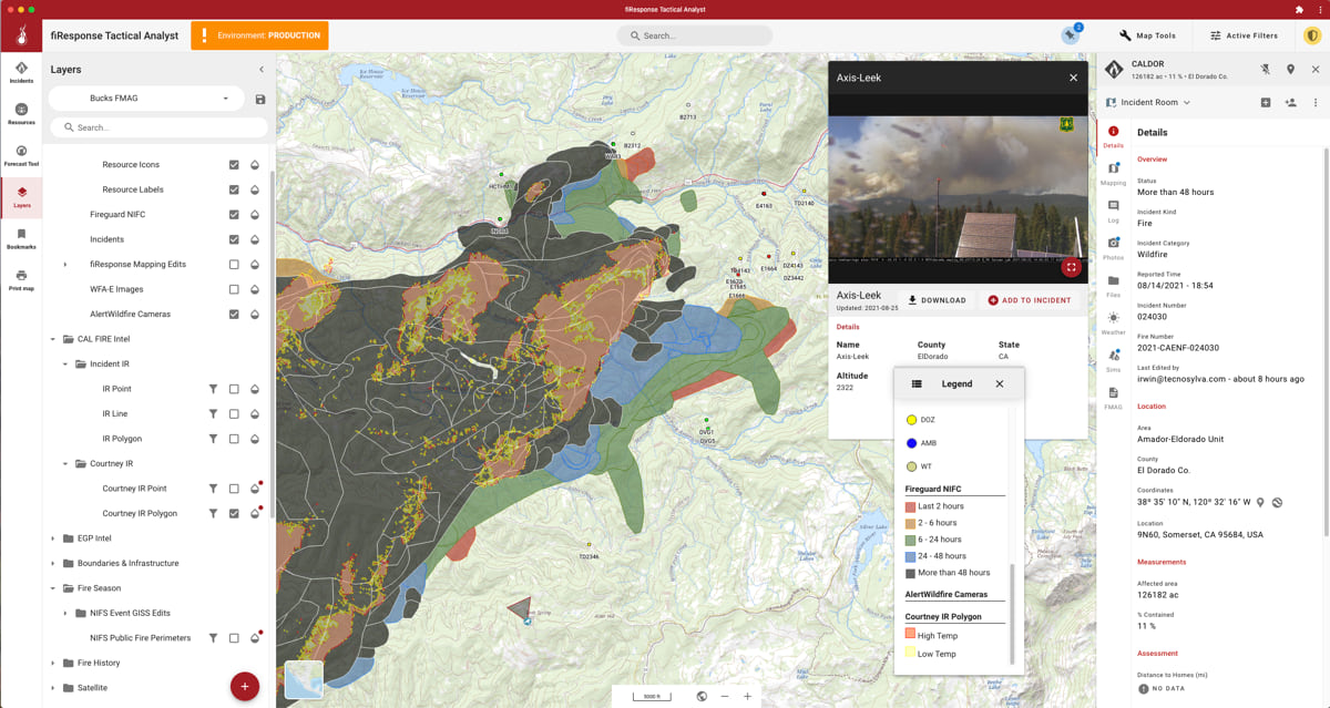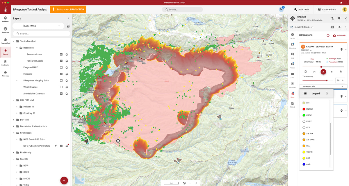 Analysts with CAL FIRE can now run simulations; plan actions; and locate all firefighters, engines, helicopters, and other resources on a single shared map. In the field, firefighting crews can view this map on their mobile devices for alerts and fire activity awareness.