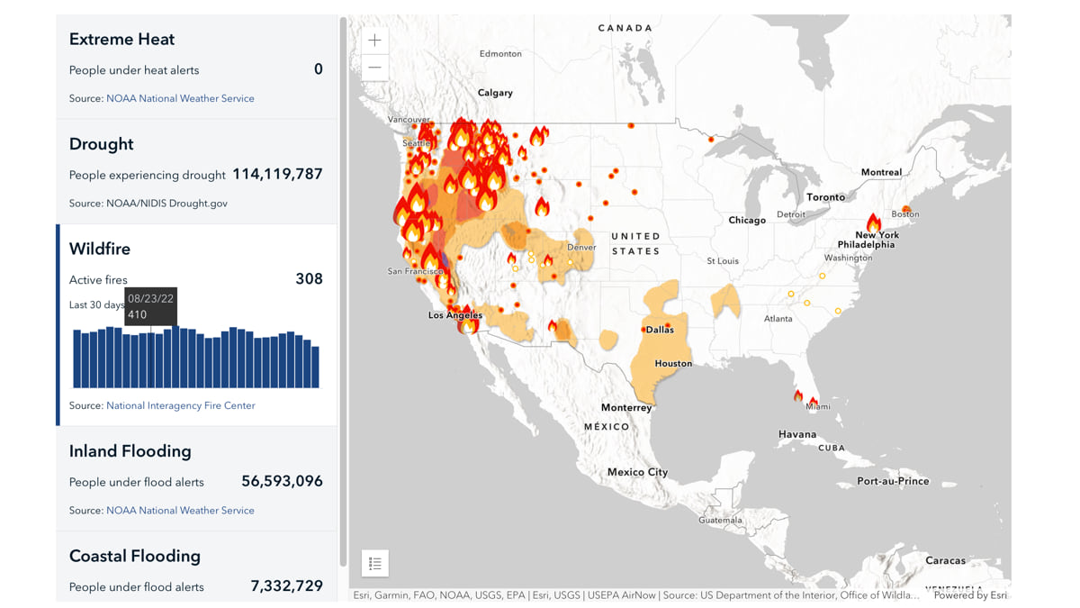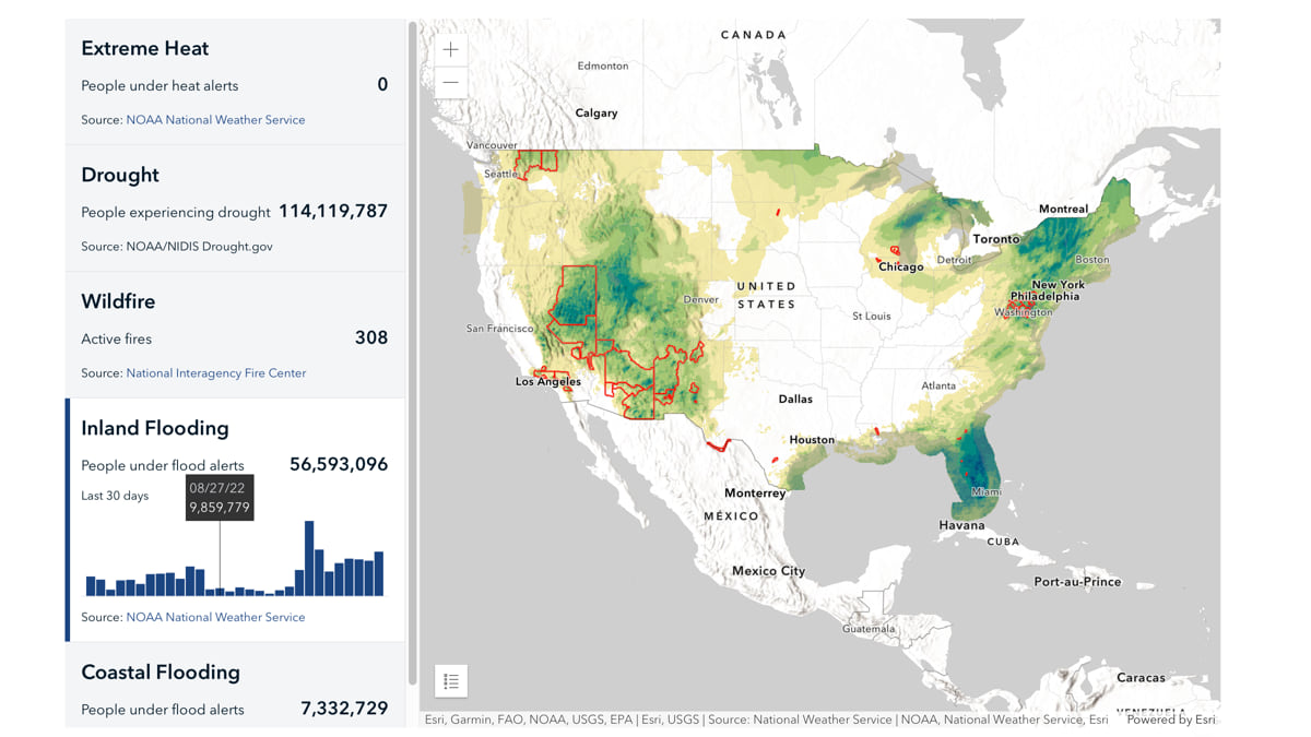 In 2022, Esri developed a tool with the National Oceanic and Atmospheric Administration, the Department of Interior, and the US Global Change Research Program that offers scientific data to help us better understand, at a local level, what’s happening with our changing climate.